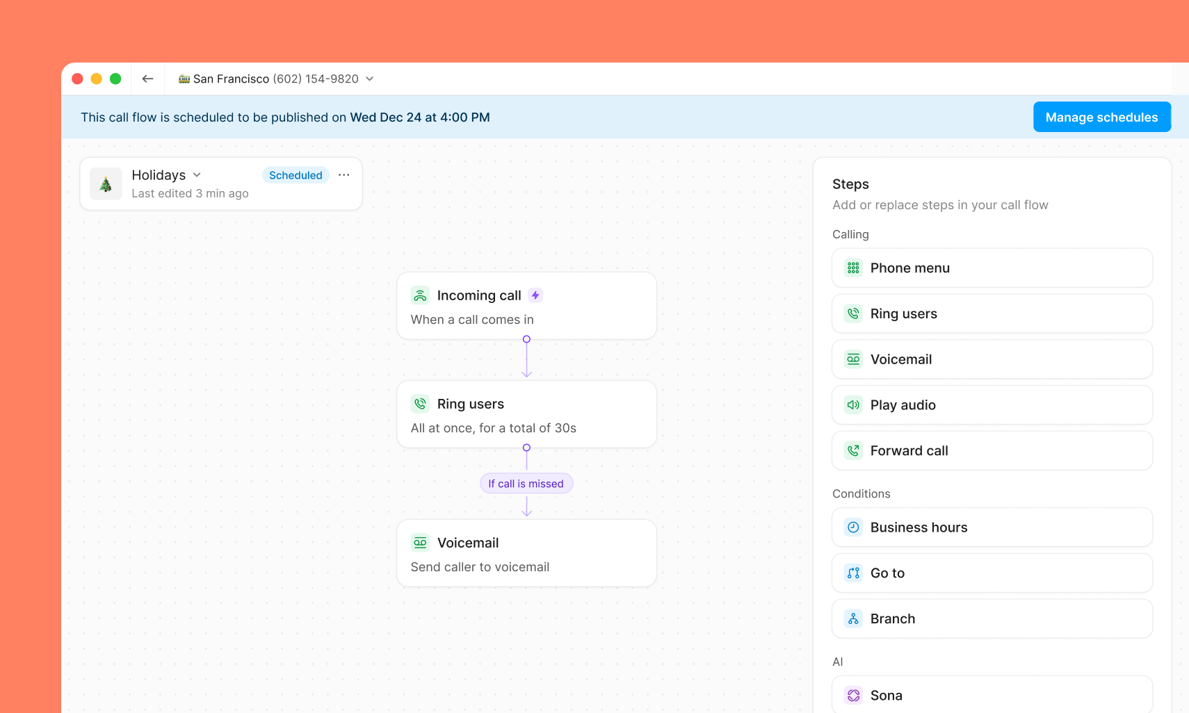 We've also shipped a few updates to make it easier to create, update, and manage your call flows, so changes go live exactly when you need them. |